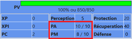 Vos PA et PM sont restaurés à chaque nouveau tour de jeu.